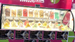 北海道の食材を使用したジェラートで旅の疲れを癒してくれるフレッシュな美味しさが人気のレディローマ・プラス函館店。金森赤レンガ倉庫のレトロな街並みを散策している途中の休憩スポットとして利用するのもおすすめです。
